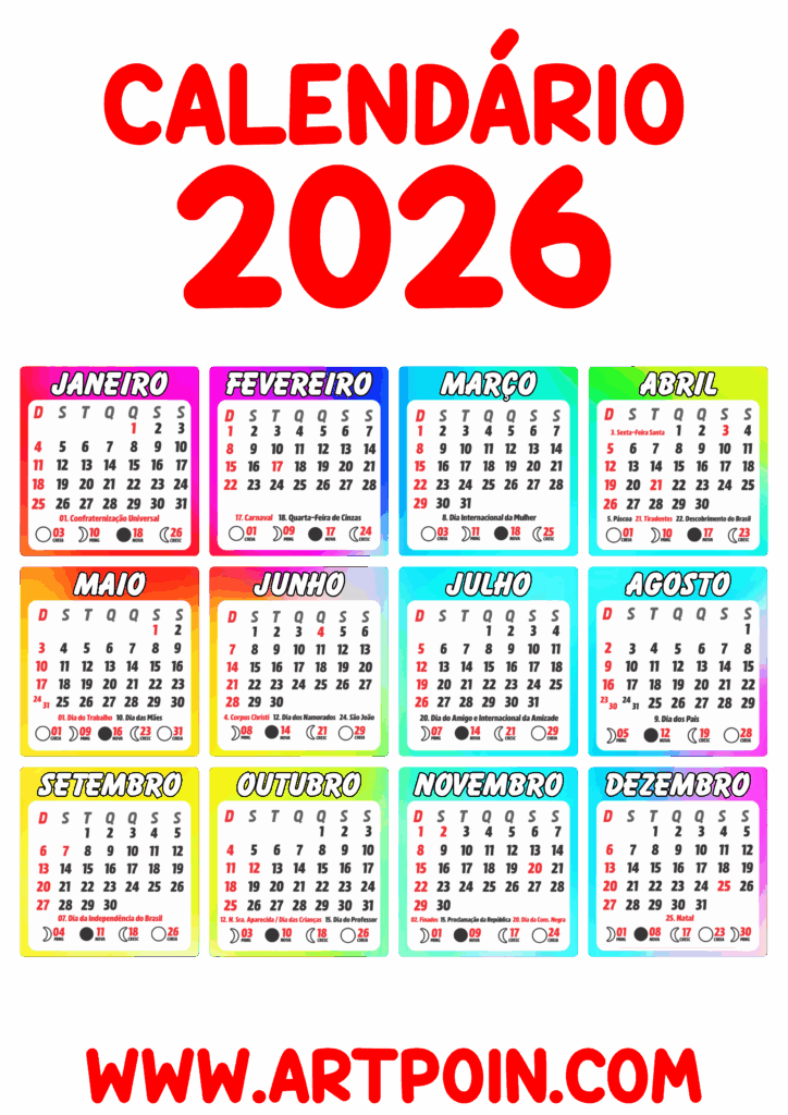 Calendário 2026 edições gráficas vermelho png