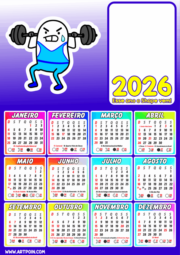 Calendário personalizado 2026 pronto para colocar a foto e imprimir esse ano o shape vem musculação flork of cows meme png