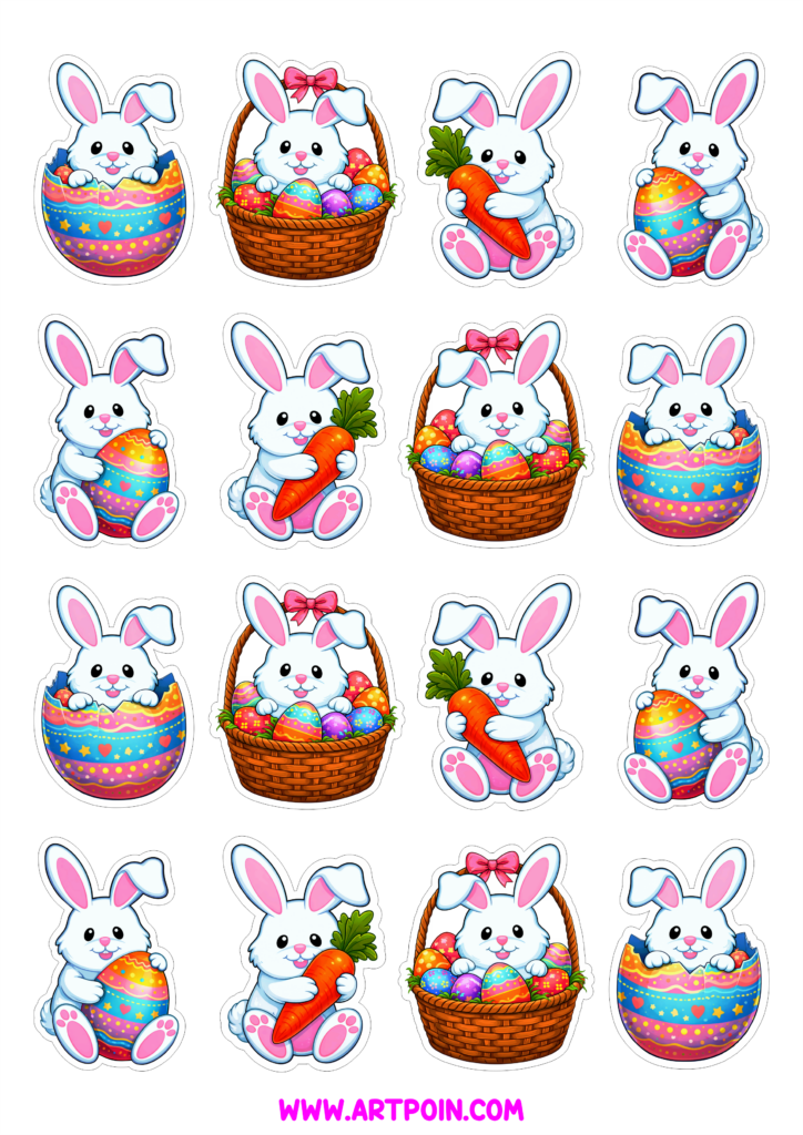 Coelhinho da páscoa fofinho adesivos prontos para imprimir e decorar sua festa e artesanatos com essas lindas imagens png