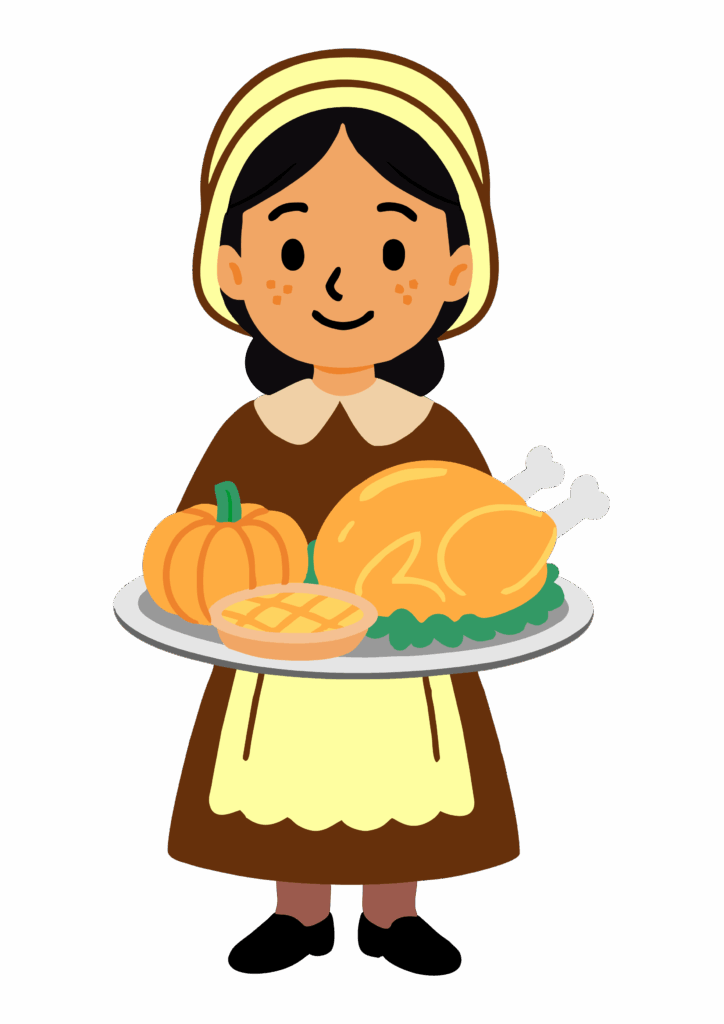 Dia de ação de graças desenho simples para decoração comida típica peru torta de abóbora feriado americano com fundo transparente png