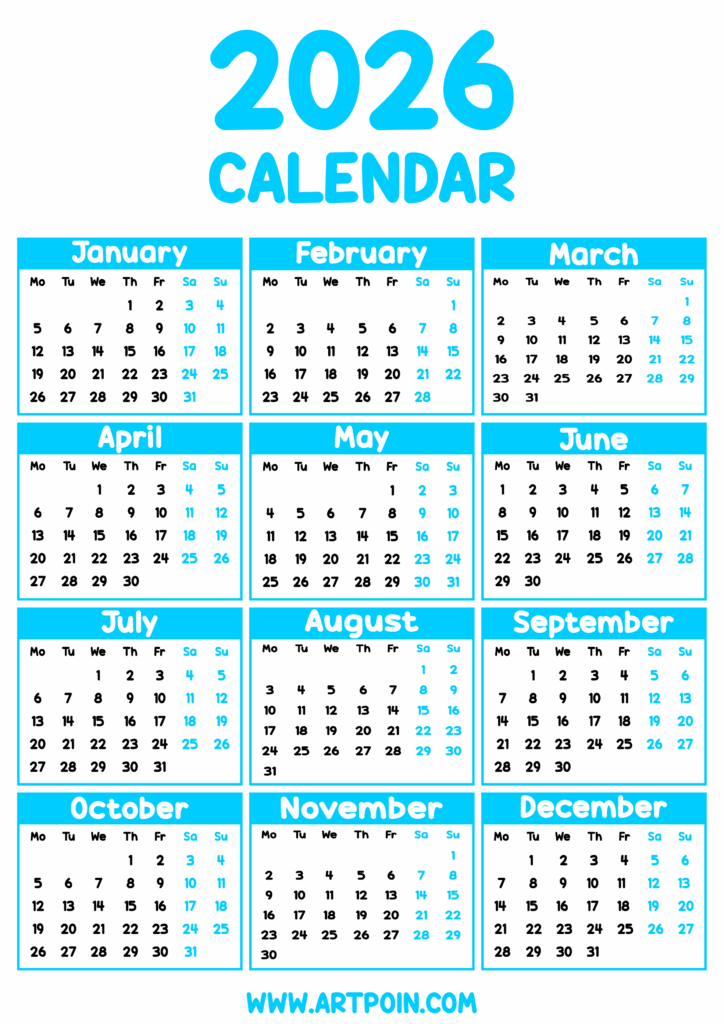 2026 calendar printable blue png