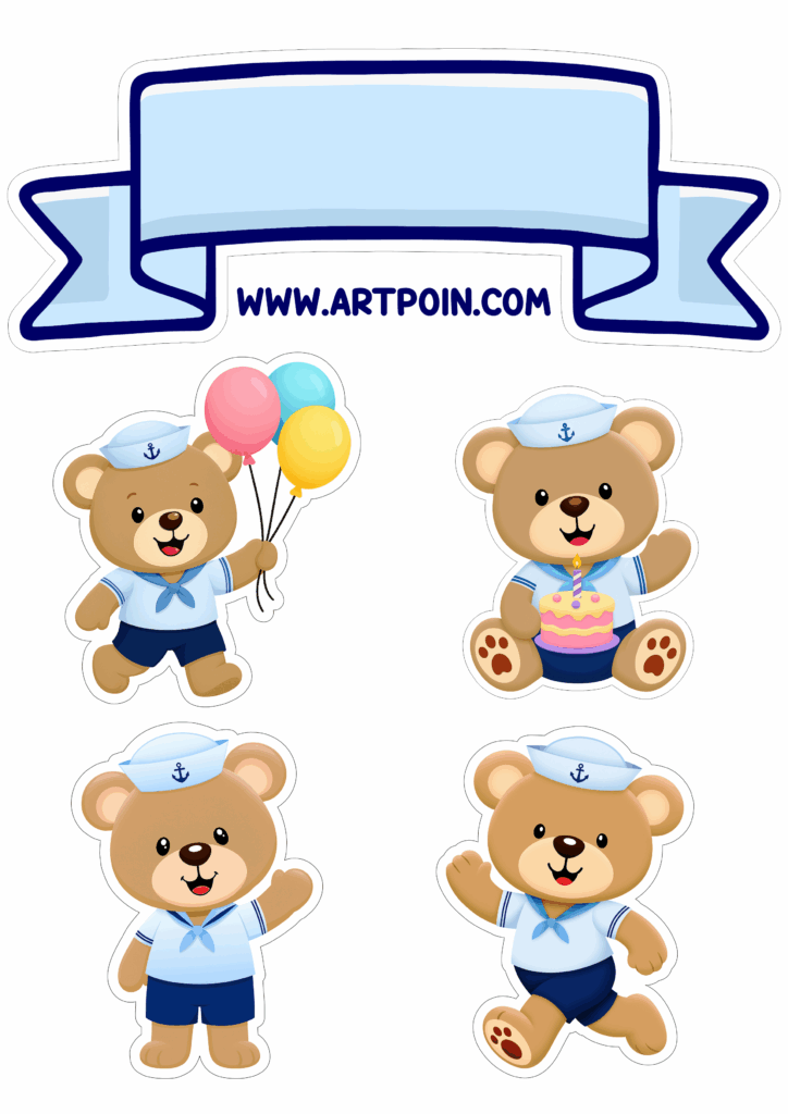 Cake topper Sailor Teddy Bear party decoration simple draw birthday cute image cakes and balloons png