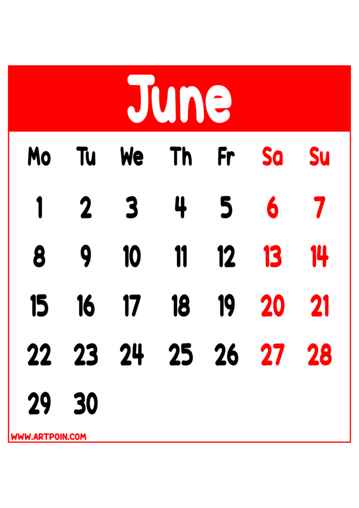 Calendar 2026 june months red details transparent background for designers and prints png