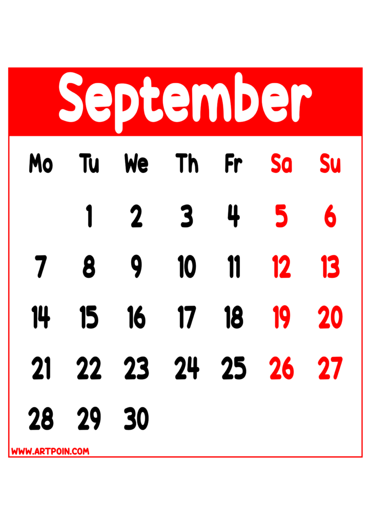 Calendar 2026 september months red details transparent background for designers and prints png