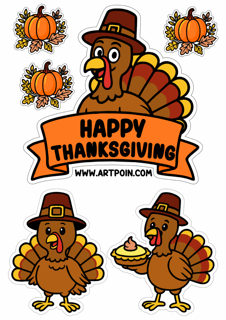Happy Thanksgiving turkey cartoon decoration party pumpkin holiday season png
