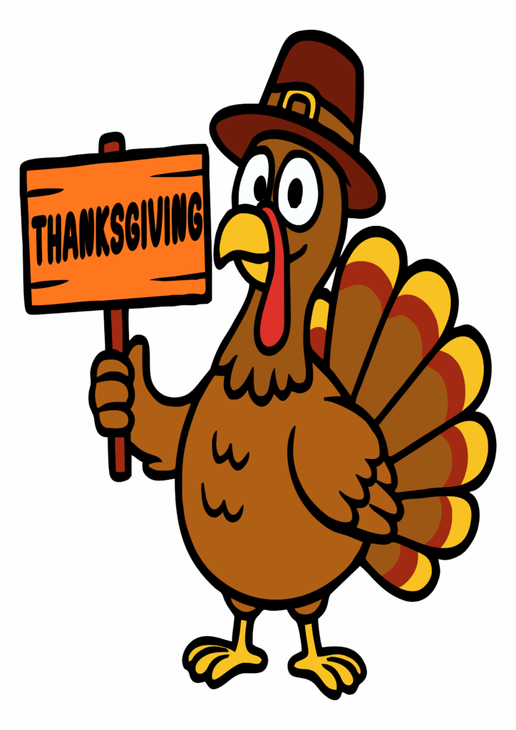 Thanksgiving turkey holding wooden sign simple drawing png