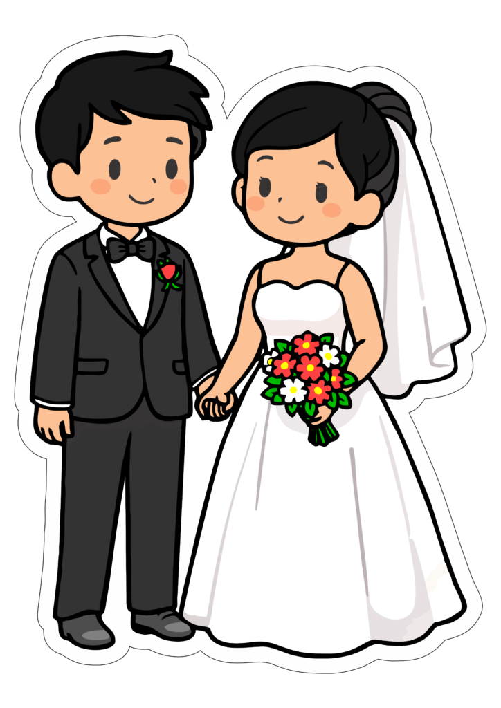 Noivinhos para topo de bolo festa de casamento dia de são Valentim imagem com contorno e fundo transparente png