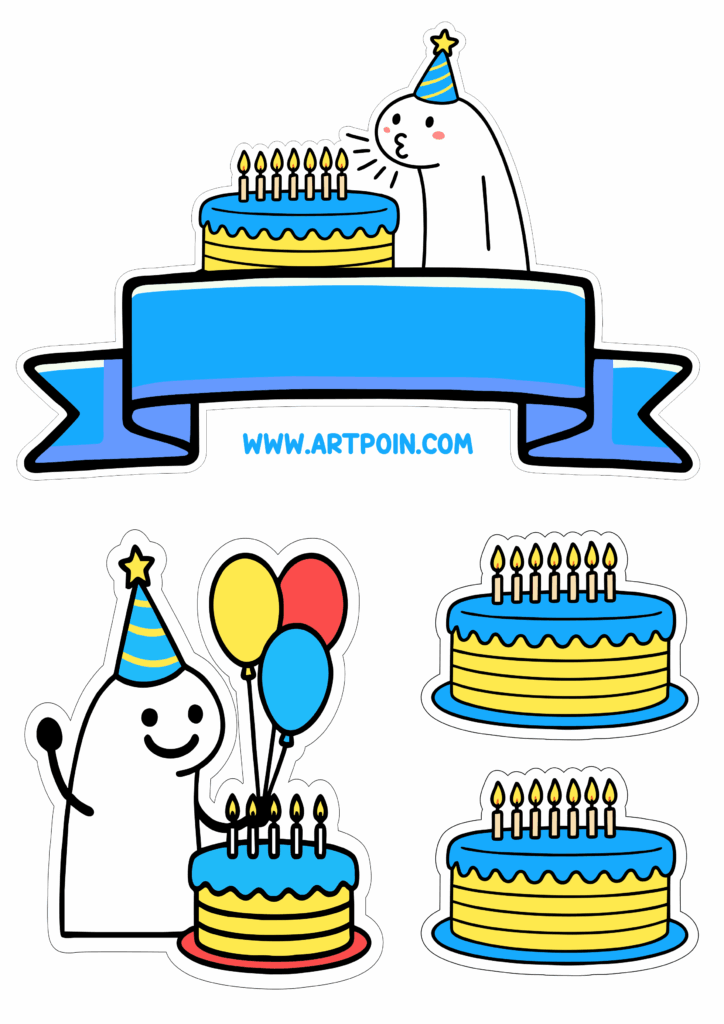 Topo de bolo para festa de aniversário flork of cows azul pronto para imprimir e deixar sua festa ainda mais incrível png