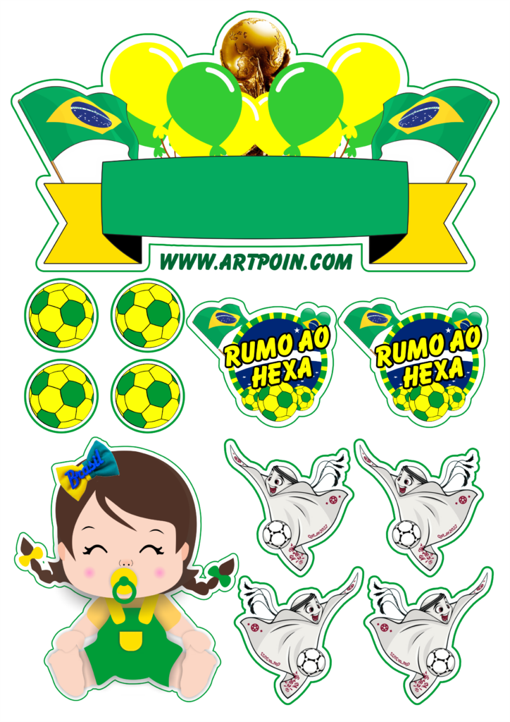 Topo de bolo pequena torcedora do brasil copa do mundo 2022 download grátis png