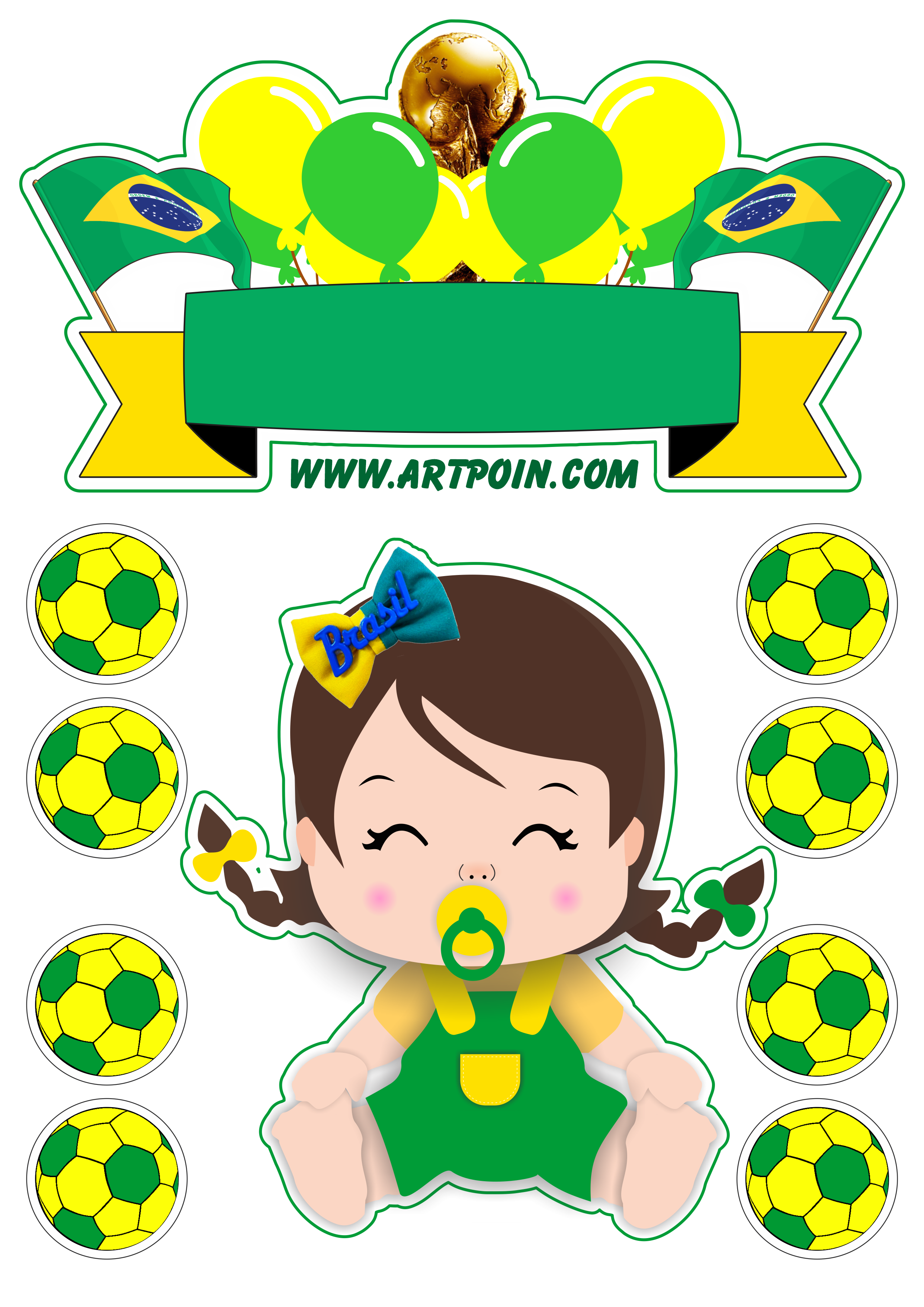 Topo de bolo pequena torcedora do brasil copa do mundo 2022 só um bolinho png